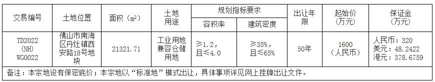 八、自本次公告起至网上挂牌截止期间,如有关于本宗地竞买文件的修改、澄清、说明等将通过网上交易系统以及佛山市南海区人民政府网发布,请有意参与竞买者密切留意。其它未尽事宜,详见本宗地的网上挂牌出让文件。