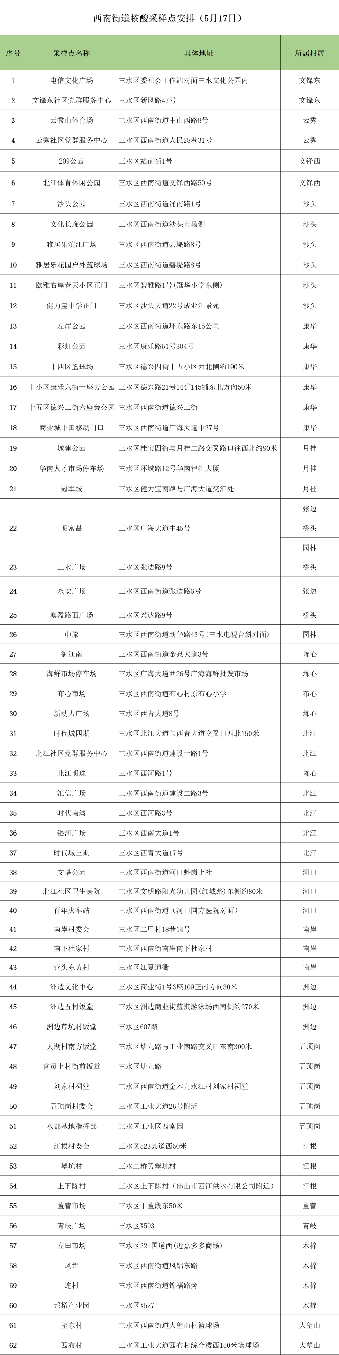 三水区云东海街道开展区域核酸检测的通告(核酸采样点)