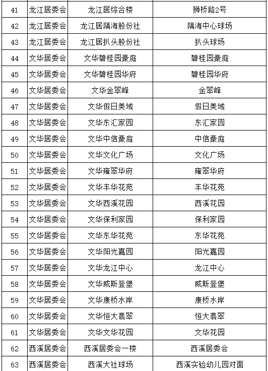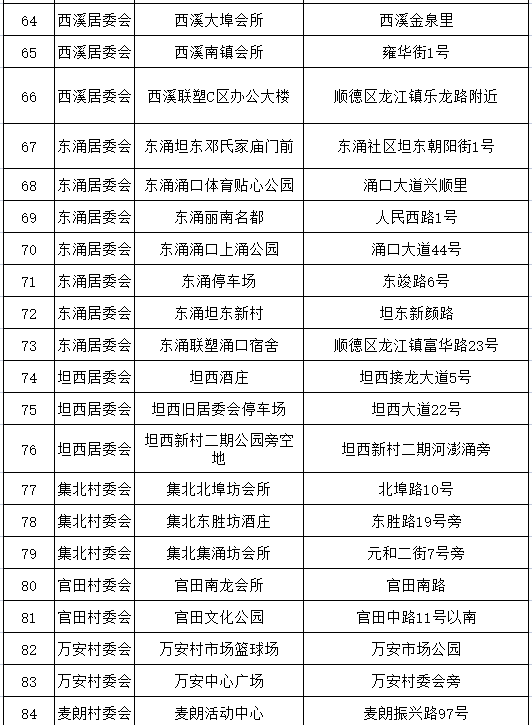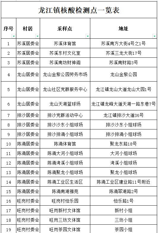 顺德区龙江镇关于组织居民群众开展免费核酸检测工作的通告(核酸采样点)