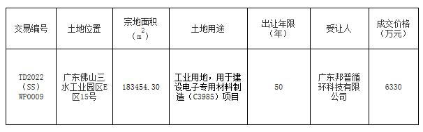 佛山市三水区国有建设用地使用权网上拍卖出让成交公告
