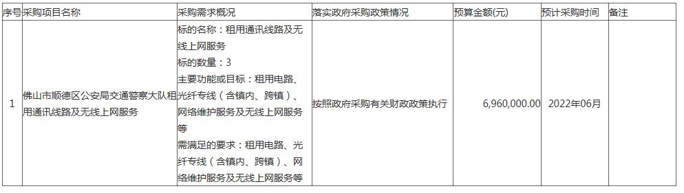 佛山市顺德区公安局交通警察大队2022年05(至)06月政府采购意向公开情况