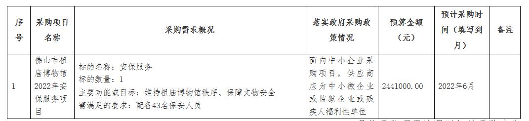 现将佛山市祖庙博物馆2022年5月至6月采购意向公开如下:
