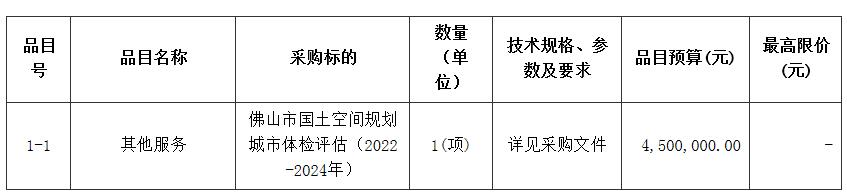 佛山市国土空间规划城市体检评估(2022-2024年)招标项目的潜在投标人应在广东省政府采购网https://gdgpo.czt.gd.gov.cn/获取招标文件,并于 2022年06月08日 09时00分 (北京时间)前递交投标文件。