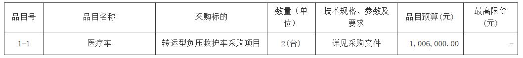 项目名称:转运型负压救护车采购项目