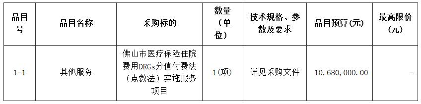 项目名称:佛山市医疗保险住院费用DRGs分值付费法(点数法)实施服务项目