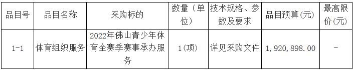 项目名称:2022年佛山青少年体育全赛季赛事承办服务