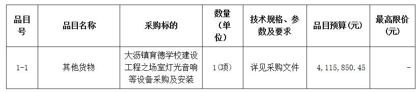 项目名称:大沥镇育德学校建设工程之场室灯光音响等设备采购及安装