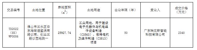 三水区云东海街道塱涡南路以南、创业三路以西地块国有建设用地使用权网上拍卖出让成交公告