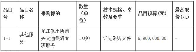 项目名称:龙江派出所购买交通铁骑专班服务项目