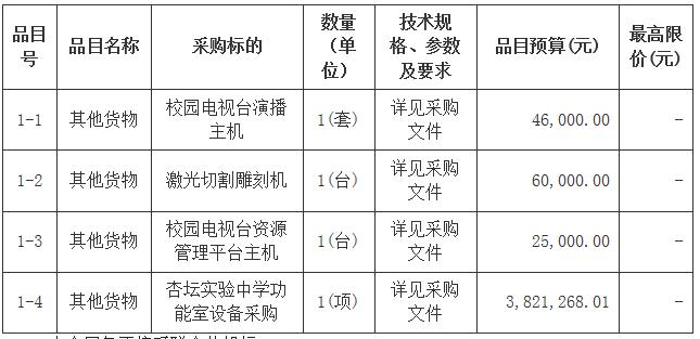 顺德杏坛实验中学功能室设备采购项目招标公告
