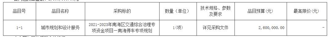 2021-2023年南海区交通综合治理专项资金项目—南海停车专项规划采购项目的潜在供应商应在广东省政府采购网https://gdgpo.czt.gd.gov.cn/获取采购文件,并于2022年06月01日09时00分(北京时间)前提交响应文件。
