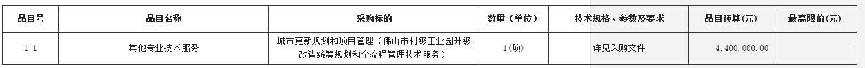 合同包1(城市更新规划和项目管理(佛山市村级工业园升级改造统筹规划和全流程管理技术服务)):