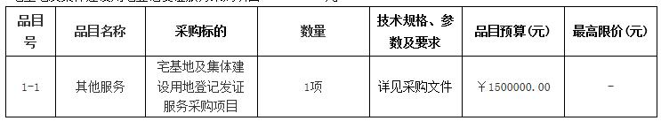 合同包预算金额:宅基地及集体建设用地登记发证服务采购项目1500000.00元
