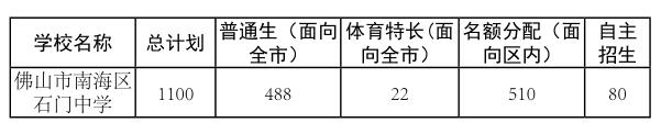 佛山市南海区石门高级中学创办于 2003 年 3 月,是南海区直属公办高中,是首批全国健康人格教育特色高中、全国科普工作先进集体、首批佛山市德育品牌学校。2013 年 11 月 30 日十周年校庆,原中共中央委员、广东省省长黄华华亲笔题词“培育英才,桃李芬芳”,充分肯定了学校的办学业绩。