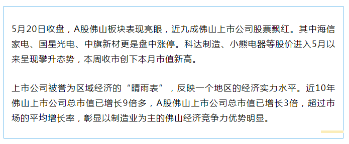 越来越多投资者认可以制造业为主的佛山上市军团,在资本市场投下信任票。