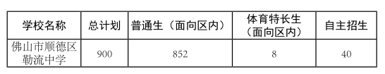 自主招生学校面向全市招生,包括佛山市第一中学、南海区石门中学和顺德区第一中学、佛山市第三中学科技创新班,南海区狮山高级中学田径高水平运动队,顺德区勒流中学武术特长生、顺德区伦教中学传媒特长生。同一所学校自主招生计划和体艺等各类特长特色类型招生计划合计数,不超过学校年度招生计划10%。