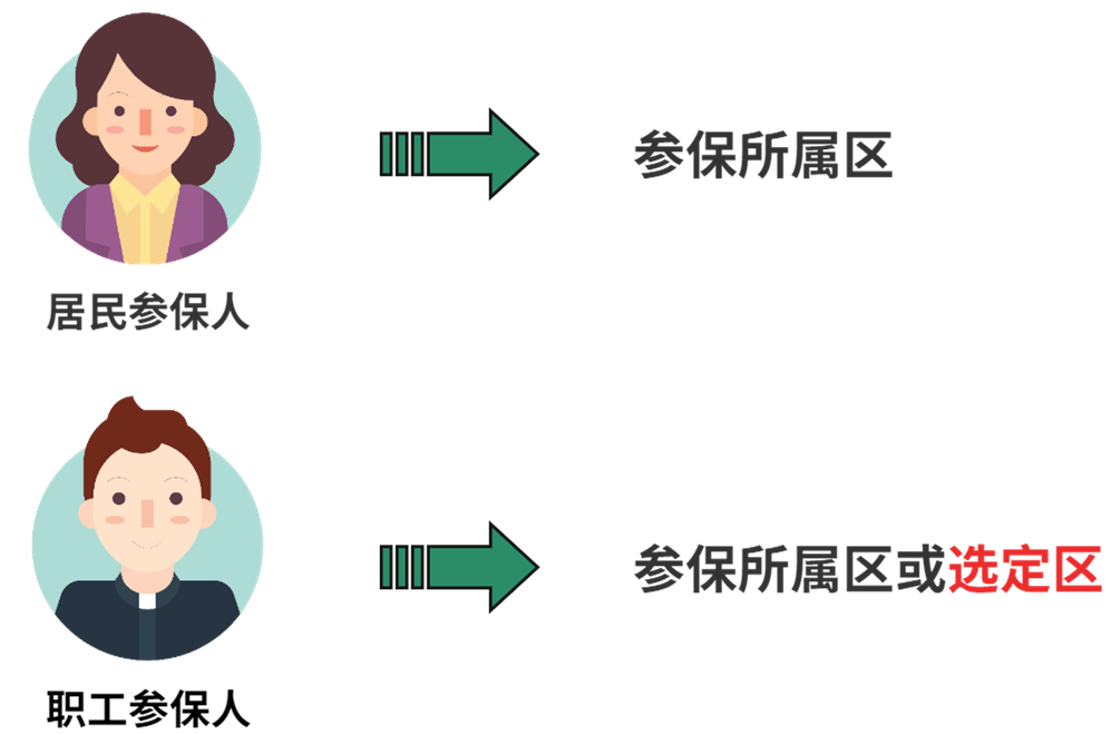 职工参保人可以按规定变更选定区享受:若职工参保人的参保地与实际工作地或常住地、户籍地不在本市同一区的,可在每年10—12月选择以常住地或实际工作地、户籍地作为下一自然年度普通门诊的待遇享受地,自下一年度1月1日起生效。如无再次办理变更手续的,以后年度默认为在该区享受普通门诊待遇。