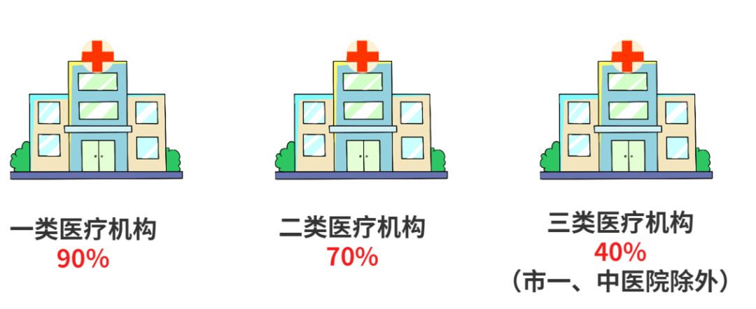 1.参保人在市内定点医疗机构发生的起付标准以上纳入统筹基金支付范围的医疗费用,由统筹基金根据医院类别支付至最高支付限额:一类医疗机构95%,二类医疗机构90%,三类医疗机构85%(恶性肿瘤手术治疗、心脑疾病手术治疗以及肝、肾和骨髓移植手术治疗住院的基金支付90%)。