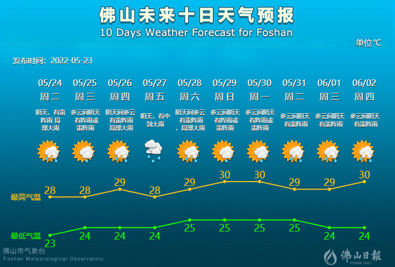 受“龙舟水”影响,佛山市近日天气清凉,夏意明显消减。5月23日,顺德区国家气象观测站录得全市最高气温27.4℃,而去年同日,顺德最高气温却达到历年五月最大值(1959年以来)37.7℃。
