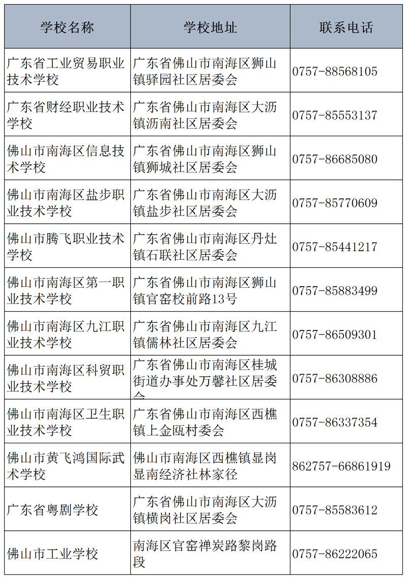 顺德区2022年各所职业学校联系电话及地址