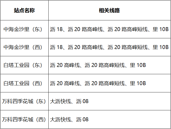 关于公交线路恢复停靠中海金沙里等站点的通告