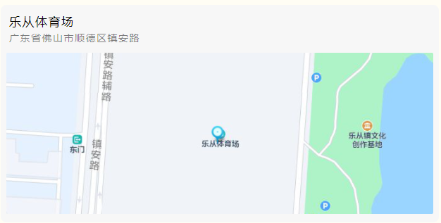 乐从体育场位于乐从镇镇安路,乐从文化公园旁。乐从体育场改造提升工程属于特色小镇建设项目,主要性质为城市体育场地兼容学校体育用场。