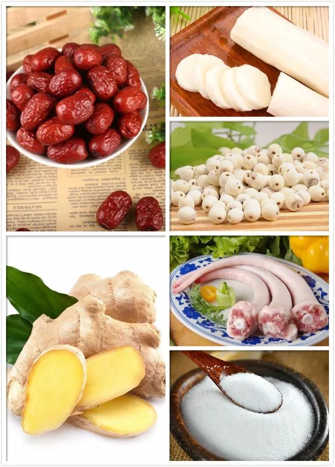 材料 :猪尾1条,莲子30g,淮山20g,红枣4颗,姜数片,盐适量;