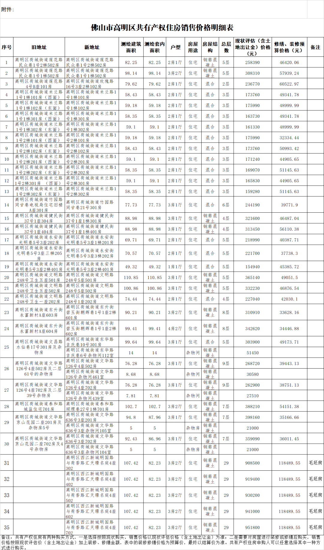 由于这些住房中有大部分原属政府公有住房,户型较为陈旧,市场价格也不高,按照《高明区试点共有产权住房管理实施细则》中有关承购人产权份额不低于50%规定,这些房源的成交价格普遍在20~35万区间,个别面积较小的房屋,总价甚至低至15万元出头,极大减轻了住房困难家庭的购房负担。