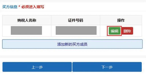 09、确认卖方信息后,点击【编辑】进入买方信息页面,选择【是否申请优惠】、【家庭套次】、【婚姻状况】并点击【填写家庭成员】录入配偶及未成年子女身份信息,填写完毕后点击【确认】。(若未婚可直接确认个人信息。)