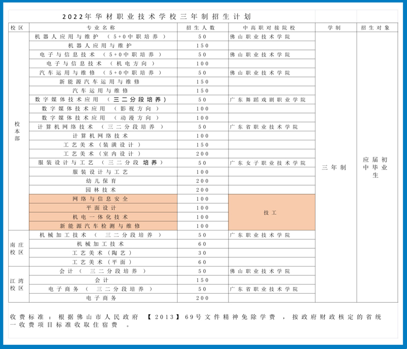 2022年佛山市华材职业技术学校、佛山市禅城区技工学校招生一览表