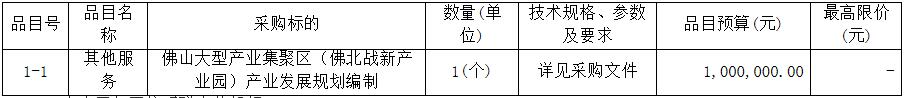 合同包1(佛山大型产业集聚区(佛北战新产业园)产业发展规划编制):