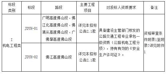 佛山高速2022-2023机电系统日常养护服务项目JDYH-01标段招标公告