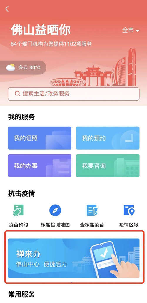 03、进入“粤省事”禅城专区