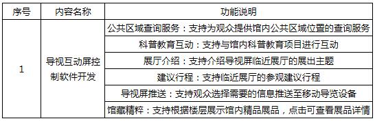 采购文件的第二章采购需求 - 二、详细技术需求 - (2)项目软硬件设备的基本要求及基本技术参数 - 4)数字化展示交互系统 - D.系统功能 增加“导视互动屏控制软件开发”的功能说明表。具体内容如下: