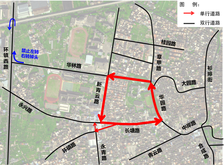 高峰常态拥堵的长塘路-华园路交叉口、华园路(中心小学路段)、华园路-华林路交叉口、新青云路-长塘路交叉口通行顺畅。