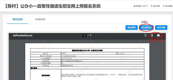 【报名信息】页面可查看报名信息,下载或导出申请表。