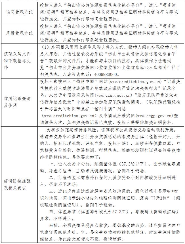 八、本项目采用电子化采购模式,符合资格的投标人应当在2022年6月1日17:30至2022年6月9日17:30期间,通过佛山市公共资源交易信息化综合平台获取采购文件,具体要求详见第十三条的“重要事项说明”。招标文件每套售价300元(人民币),售后不退。在项目开标当天由招标代理机构以现金形式现场收取。不缴纳招标文件费用的,均视为自动放弃投标权利。