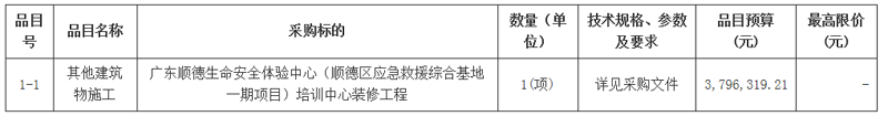 合同包1(广东顺德生命安全体验中心(顺德区应急救援综合基地一期项目)培训中心装修工程):