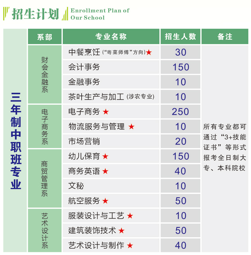 一、招生对象∶应届初中毕业生(非三二分段专业可招收往届毕业生);