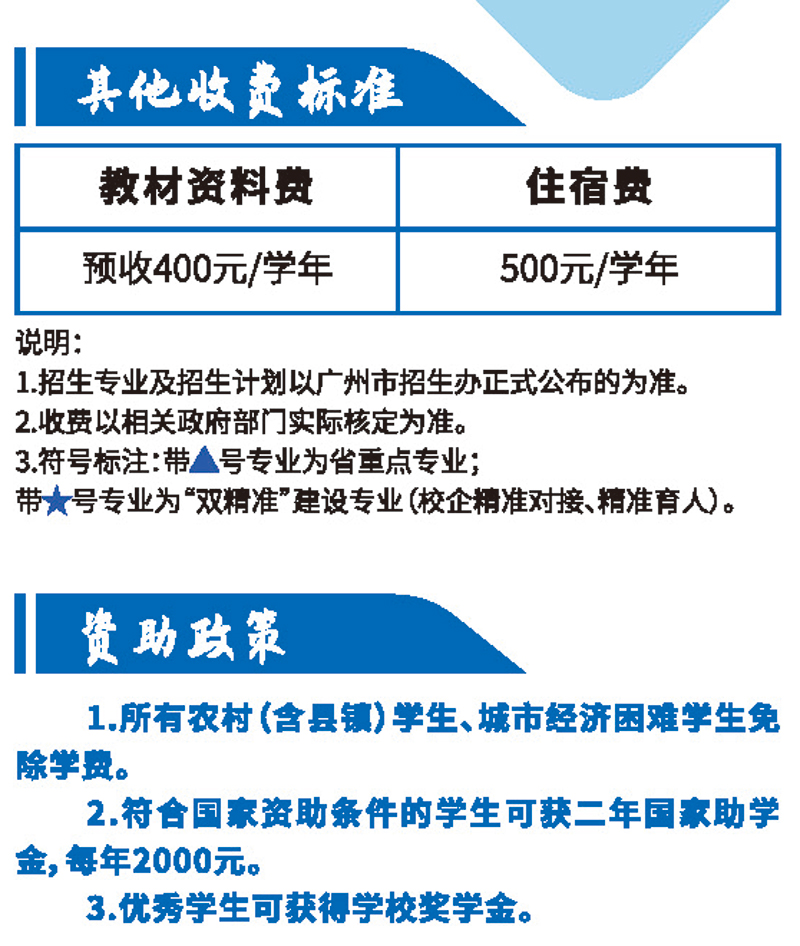 其他费用∶课本资料费400元/学年;住宿生普通宿舍费500-550元/学年,学生公寓1200元/学年(配空调,收费以广东省物价局批文为准);校服费950元(一次性收费);城镇居民医疗保险费约400元/学年
