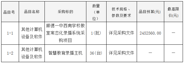 合同包1(顺德一中西南学校教室常态化录播系统采购项目):