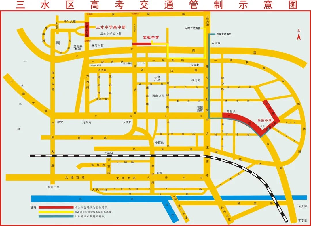 (三水区高考交通管制示意图☝ 点击可查看大图)