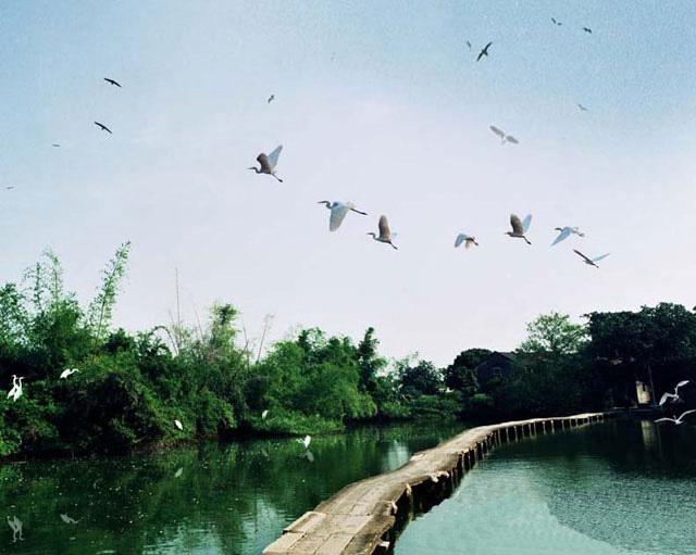 位于九江镇西北面,保护的野生动物主要是鹭鸟,该鹭鸟天堂已有150多年的历史,由于优越的自然环境和严格的保护,竹林中常栖息的鹭鸟3~5万只,已成为鹭鸟天堂(俗称鹤巢)。