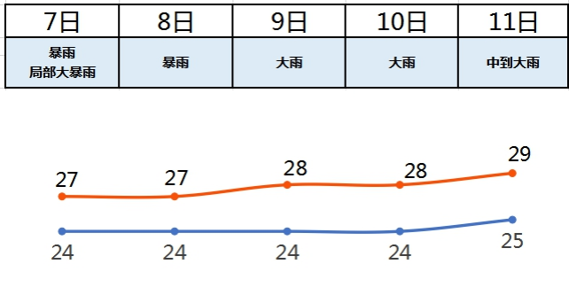 受降雨影响,7-9日气温在24~28℃之间,日温差小,天气凉爽。