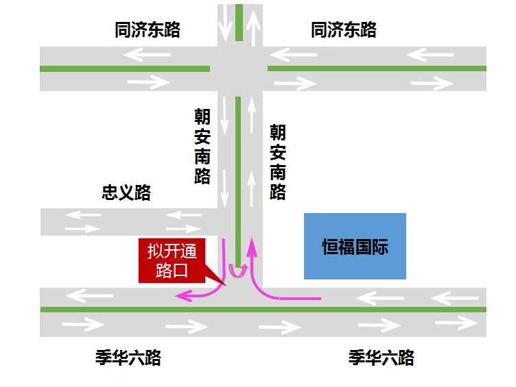 朝安南路-季华六路路口将调整为T字灯控路口,采用“右进右出”的交通组织方式,并保留朝安南路北往北方向掉头位。