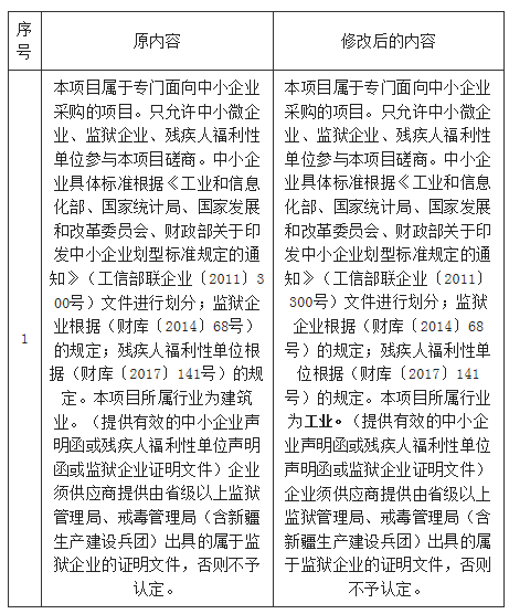 采购包整体专门面向中小企业,只允许中小微企业、监狱企业、残疾人福利性单位参与本项目投标。中小企业具体标准根据《工业和信息化部、国家统计局、国家发展和改革委员会、财政部关于印发中小企业划型标准规定的通知》(工信部联企业〔2011〕300号)文件进行划分;监狱企业根据(财库〔2014〕68号)的规定;残疾人福利性单位根据(财库〔2017〕141 号)的规定。提供有效的中小企业声明函(或残疾人福利性单位声明函或监狱企业证明文件),否则不予认定。本项目采购标的对应的中小企业划分标准所属行业为:工业。