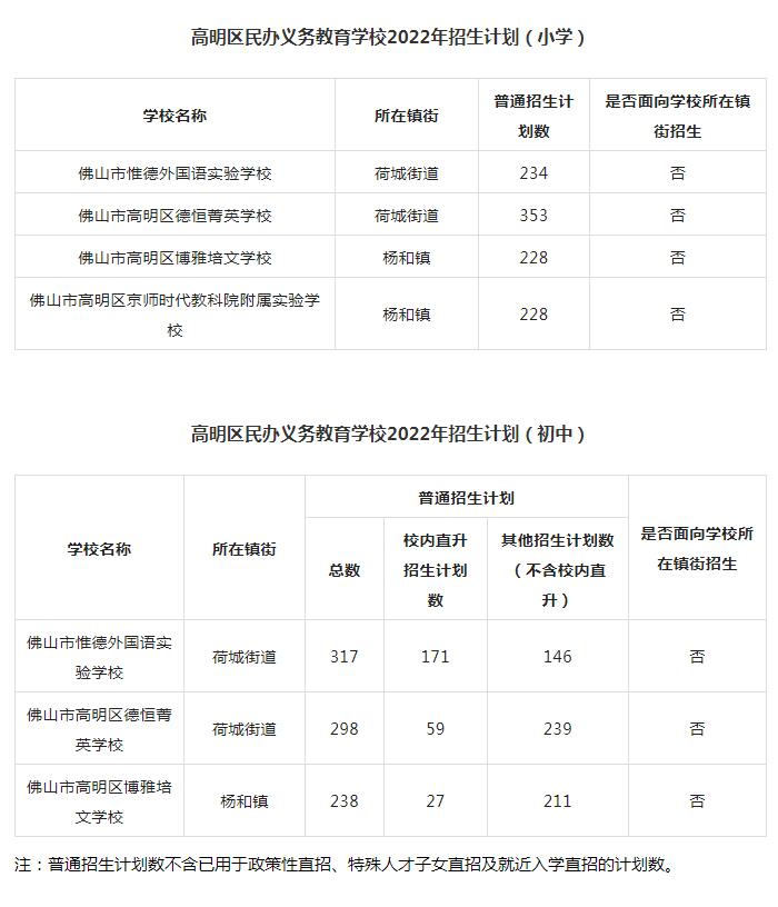 根据《佛山市教育局关于印发《佛山市民办义务教育学校招生工作实施方案(修订版)》的通知》(佛山教育〔2022〕40号)和《关于印发〈2022年高明区民办义务教育学校招生工作实施细则〉的通知》(明教考〔2022〕28号)精神和要求,现公布高明区民办义务教育学校2022年招生计划。