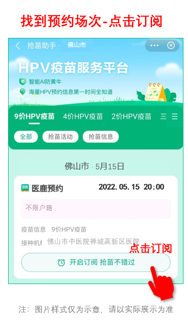 【请注意】:点击“开启订阅”,抢苗不错过!疫苗开放预约时,订阅按钮将变为预约入口,点击“立即预约”。