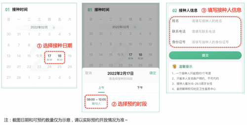 【请注意】:请根据自身需求选择预约接种时间,并认真填写预约信息(很重要!)