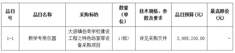 项目名称:大沥镇伯奇学校建设工程之特色场室等设备采购项目
